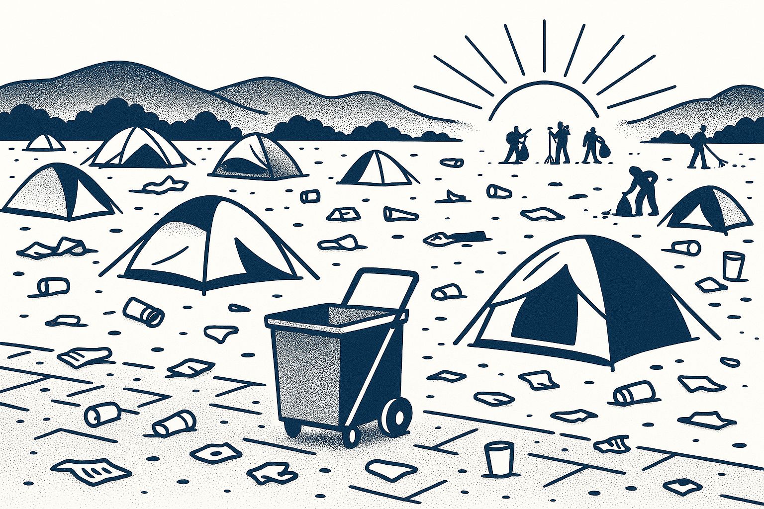 But with mass tourism came something new: waste. Trails once nearly untouched filled with wrappers and bottles; festival fields woke up covered in food scraps, plastic cups, and papers carried away by the wind.